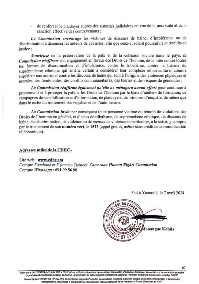 0 0 Share on Facebook Tweet it Share on Reddit Pin it Email Read Time:5 Second Ci dessous l’intégralité de la déclaration de la commission des Droits de l’homme du Cameroun(CDHC). Share Facebook Twitter Pinterest LinkedIn About Post Author Elise Tchuenkam familletatissonfabrice@gmail.com http://upactu.com Happy 0 0 % Sad 0 0 % Excited 0 0 % Sleepy 0 0 % Angry 0 0 % Surprise 0 0 %