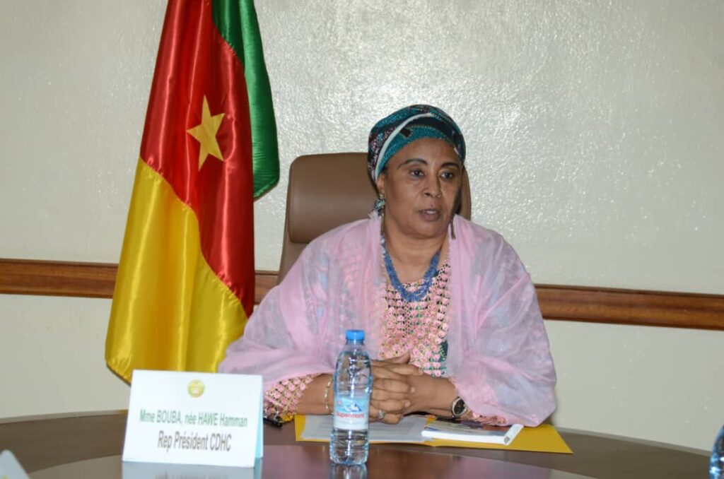 Le Commissaire HAWE BOUBA HAMMAN membre de la Sous-commission en charge de la promotion des Droits de l’homme et représentante des peuples Autochtones parmi les Commissaires de la (CDHC) était, quant à elle assistée du chef de Cabinet du Président, M. Mamouda FÉRIKOUOP ainsi que du chef de Service de la coopération de la documentation et recherche, Mme Mabel SHU NYAMBOLI.