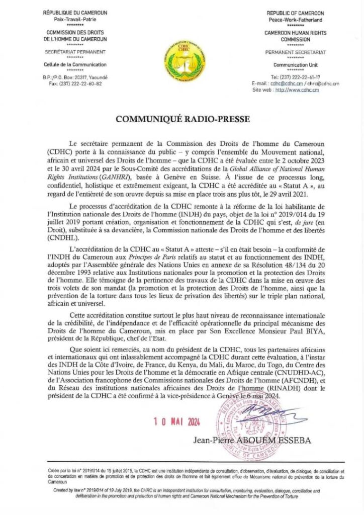 ci-dessous l’intégralité du communiqué Radio presse afférent :