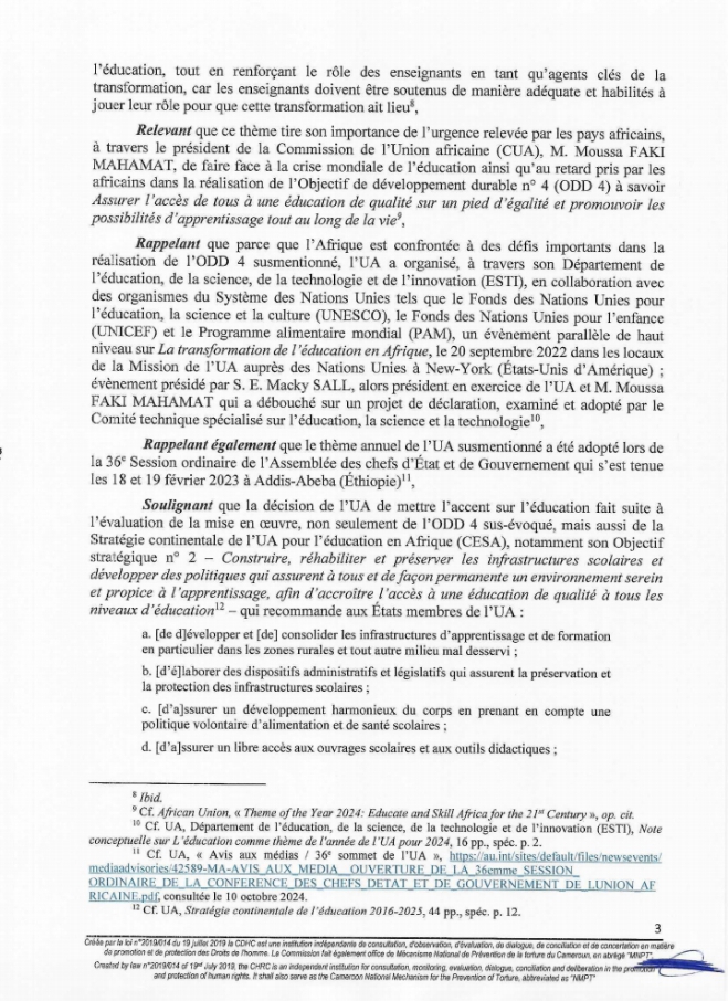 Le thème retenu pour cette édition, « Éduquer une Afrique adaptée au 21e siècle : construire des systèmes éducatifs résilients pour un accès accru à un apprentissage de qualité, inclusif et pertinent tout au long de la vie en Afrique », revêt une importance cruciale. En effet, alors que l’Afrique est confrontée à des défis multiples dans ses efforts de développement, l’éducation se révèle être un levier essentiel pour promouvoir l’épanouissement des peuples et garantir une pleine jouissance des droits humains.