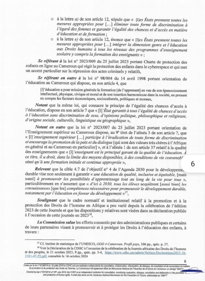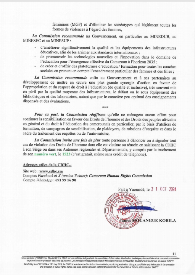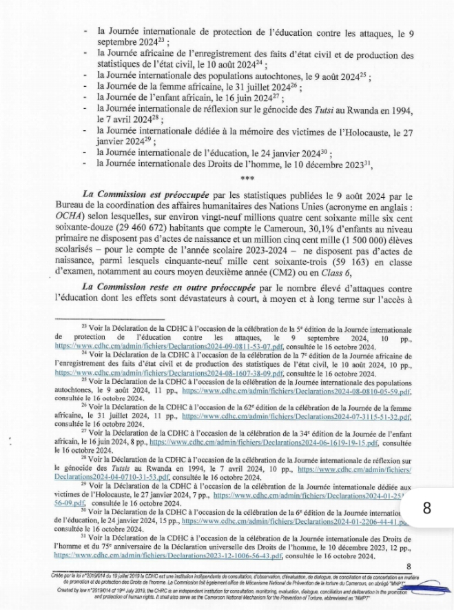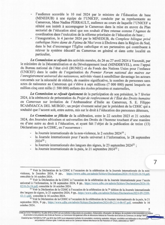 Pour cette célébration, la CDHC sous l’impulsion de son Président Pr James MOUANGUE KOBILA, Agrégé en Droit Public a rendu publique une Déclaration afférente.