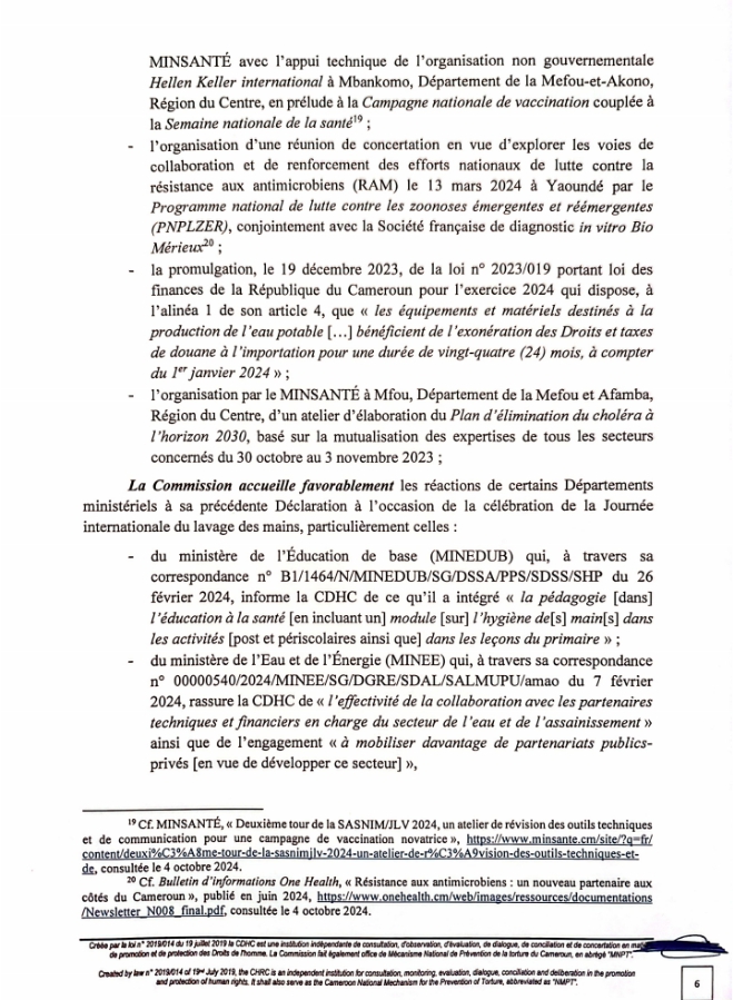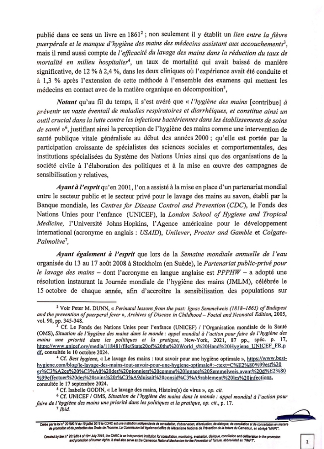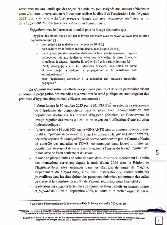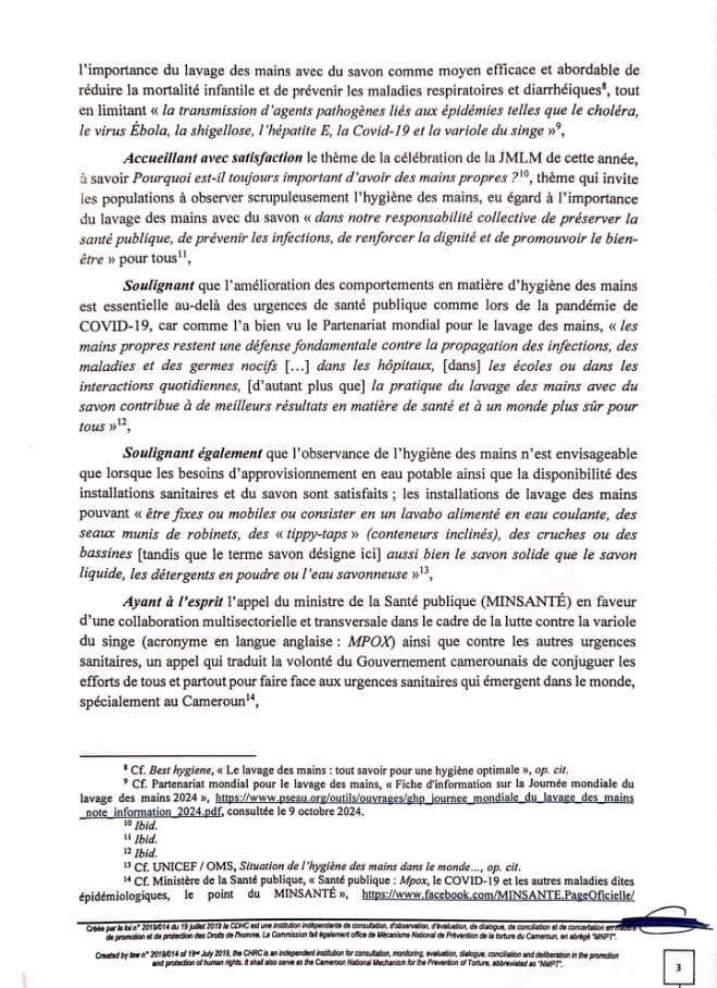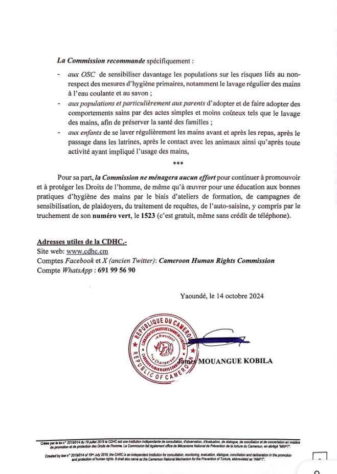Le 15 Octobre 2024, dernier , la Commission des Droits de l’Homme du Cameroun (CDHC) sous l’impulsion de son Président Pr James MOUANGUE KOBILA, Agrégé en Droit Public, s’est joint à la Communauté Internationale pour célébrer la Journée mondiale du lavage des mains.
