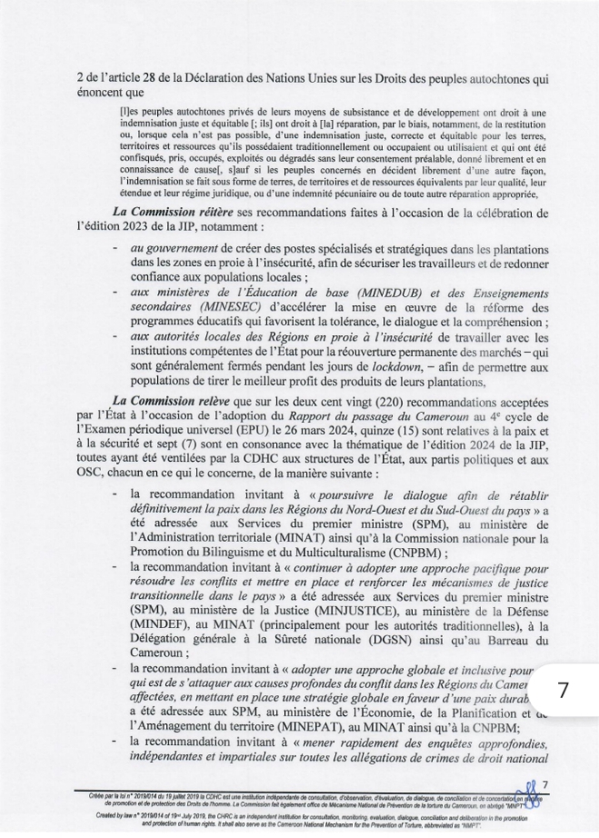 A travers cette Déclaration , Pr James MOUANGUE KOBILA, Agrégé en Droit Public, Président de la CDHC réaffirme son engagement à promouvoir les droits de l’homme et la paix dans tout le Cameroun.