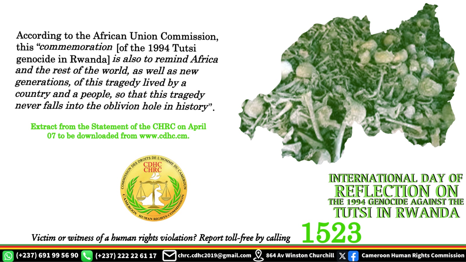 La Commission se félicite de la prise en compte, par certaines administrations, de ses recommandations formulées à leur attention dans ses Déclarations antérieures à l’occasion de la célébration de la Journée internationale de réflexion sur le génocide des Tutsis au Rwanda en 1994.