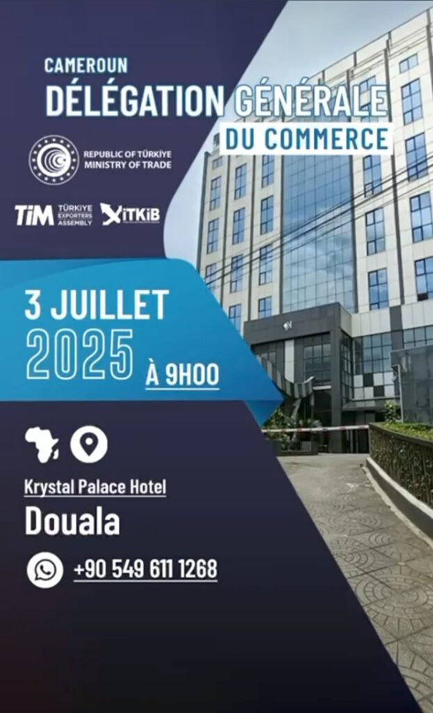 La capitale économique du Cameroun, Douala, s’apprête à accueillir un événement économique d’envergure : le Forum B2B Turquie–Cameroun, prévu le jeudi 3 juillet 2025 à l’hôtel Krystal Palace. Cette journée de dialogue et de partenariat commercial mettra en relation directe plus de 20 entreprises turques avec des opérateurs économiques et institutions camerounaises autour d’un objectif central : dynamiser les échanges commerciaux bilatéraux et favoriser l’investissement mutuel.