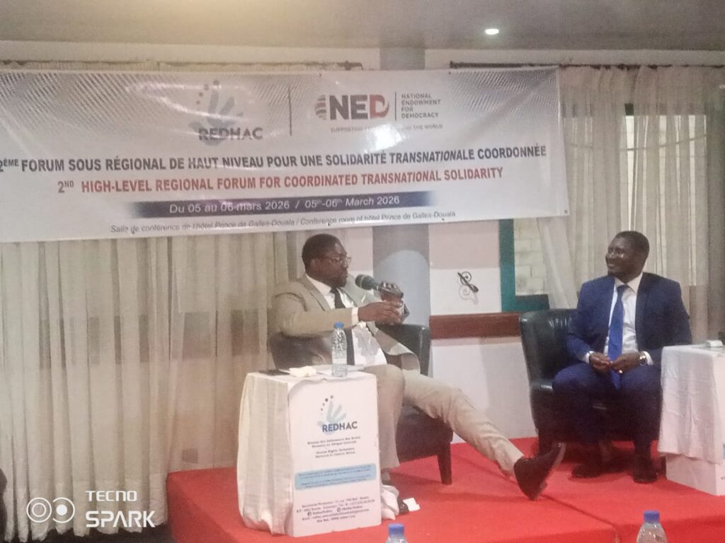 Organisé par le Réseau des Défenseurs des Droits Humains en Afrique Centrale (REDHAC) sous l’impulsion de sa Directrice exécutive Maximilienne Ngo Mbe et avec l’appui du National Endowment for Democracy (NED), ce deuxième Forum transnational de haut niveau, qui s’est tenu les 5 et 6 mars 2026 à Douala, bénéficie également de l’accompagnement de Me Alice Nkom, Présidente du conseil d’administration du REDHAC, et de Amanye Botiba Philippe, Chef d’antenne régionale des droits de l’homme. L’événement vise à renforcer la coopération entre défenseurs des droits humains, journalistes et acteurs de la société civile dans les zones frontalières entre le Cameroun et le Tchad, fragilisées par des crises sécuritaires et des restrictions de l’espace civique.