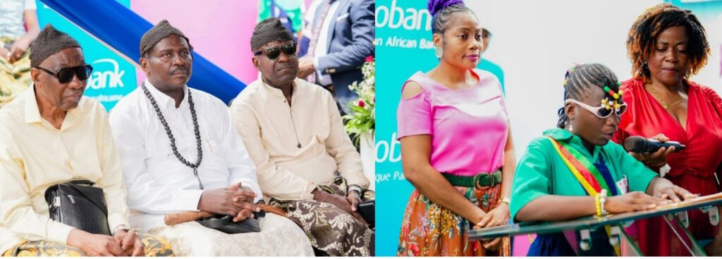 La cérémonie a été marquée par des chants , des danses des élèves, très émouvants : « Je suis beau parce que je suis d’Ecobank », « Ecobank oh ohhh je ne peux pas te laisser », « Ecobank est joli, la Directrice est jolie, les employés sont dynamiques ».