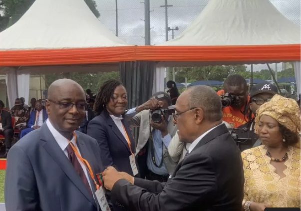 « Malgré les difficultés qui existent ; vous êtes restés tourner vers des objectifs sérieux, vers les objectifs favorables à votre clientèle, la cohésion sociale semble bien régné quant on écoute les discours du représentant du personnel et du Directeur Général de votre structure, je voudrais vous donner ici publiquement et solennellement les félicitations du Gouvernement »