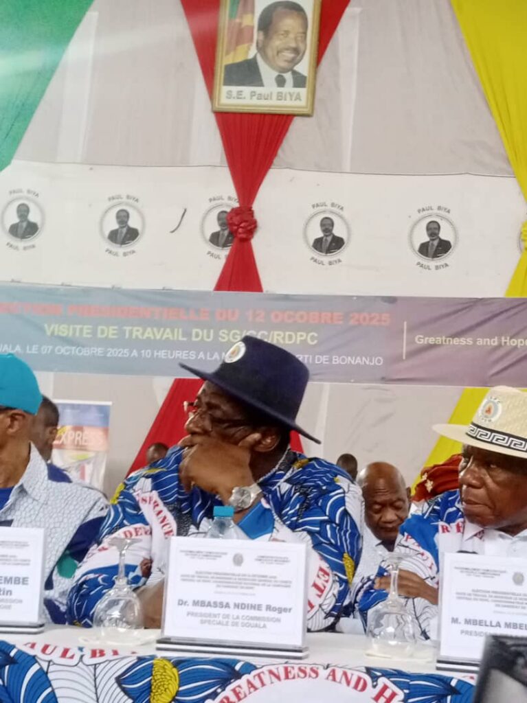 À quatre jours de l’élection Présidentielle du 12 octobre 2025, le Secrétaire général du Comité central du RDPC, Pr Jean Nkuété, en sa qualité de Président de la Commission Nationale de campagne, a effectué une visite de travail dans la région du Littoral. À ses côtés, Monsieur le Ministre d’État Laurent Esso, membre titulaire du Comité central et Président de la Commission régionale de campagne du RDPC dans le Littoral, le camarade Mme Geneviève T., membre du Bureau politique représentant la Commission régionale du RDPC Littoral, ainsi que le camarade Mbassa Ndine Roger, Maire de la Ville de Douala et Président de la Commission spéciale des Doualais. Objectif : remobiliser les militants et responsables locaux afin de garantir une victoire éclatante au candidat du parti, le Camarade Paul Biya.
