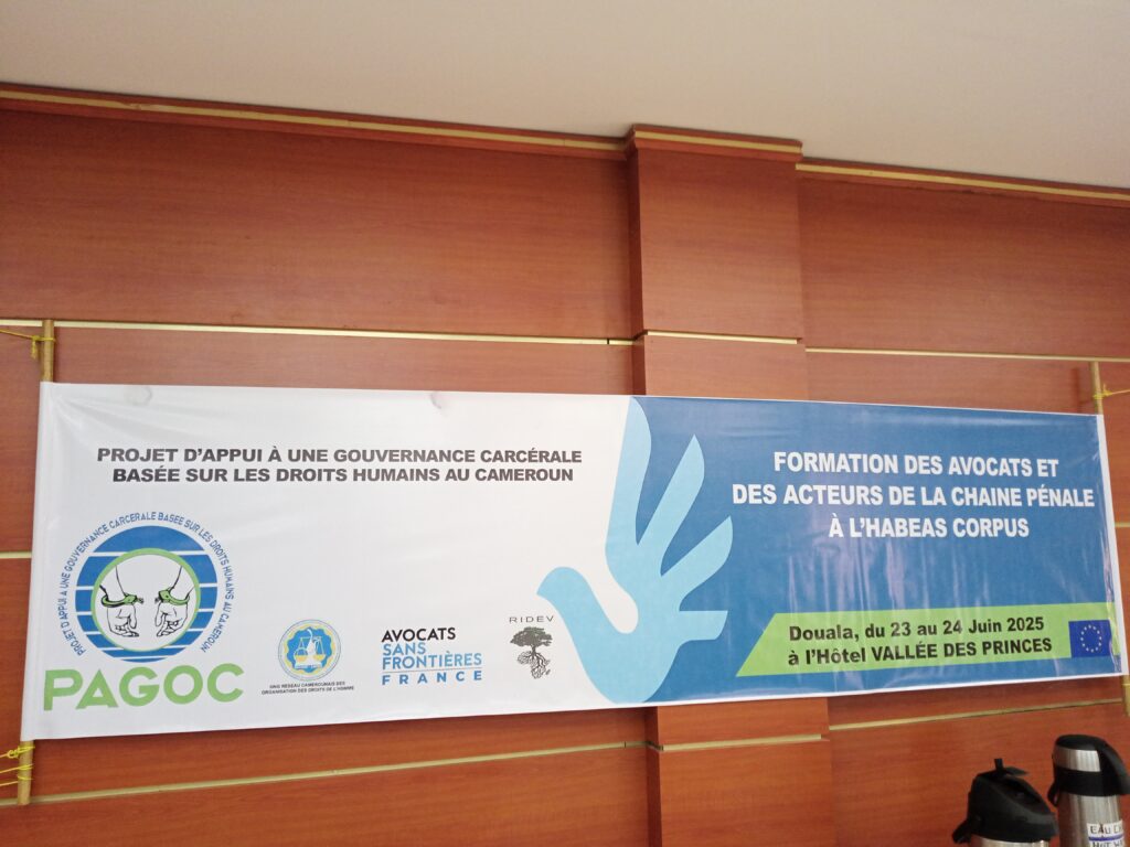 Pour répondre aux multiples dérives liées à la détention arbitraire au Cameroun, le Projet d’Appui à une Gouvernance Carcérale basée sur les Droits Humains au Cameroun (PAGOC), soutenu par l’Union européenne, mise sur une stratégie clé : renforcer l’usage de l’habeas corpus à travers une capacitation des professionnels du droit. Depuis deux jours, magistrats, avocats, juges et personnels pénitentiaires sont réunis à Douala dans le cadre d’un atelier initié par Avocats Sans Frontières France (ASF France) et le Réseau Camerounais des Organisations des Droits de l’Homme (RECODH).