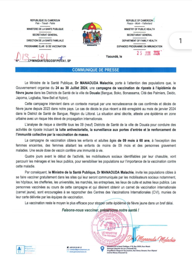 La campagne de vaccination contre la fièvre jaune à Douala représente un défi majeur nécessitant une coordination efficace entre les médias, les leaders communautaires et les autorités.