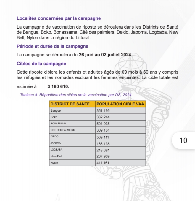 Pour la ville de Douala, la campagne vise à vacciner au moins 95% des populations cibles dans les neuf districts de santé (DS).