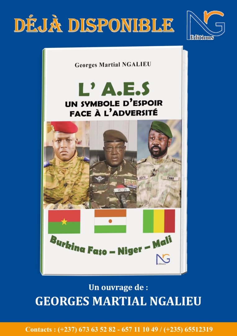 C’est le troisième ouvrage de l’écrivain Panafricaniste Georges Martial NGALIEU. Dans ce troisième ouvrage intitulé « L’A.E.S : un Symbole d’Espoir face à l’Adversité », Martial NGALIEU se penche sur les parcours inspirants de trois hommes d’État Africains : Ibrahim Traoré au Burkina Faso, Assimi Goïta au Mali, et Abdourahamane Tiani au Niger.