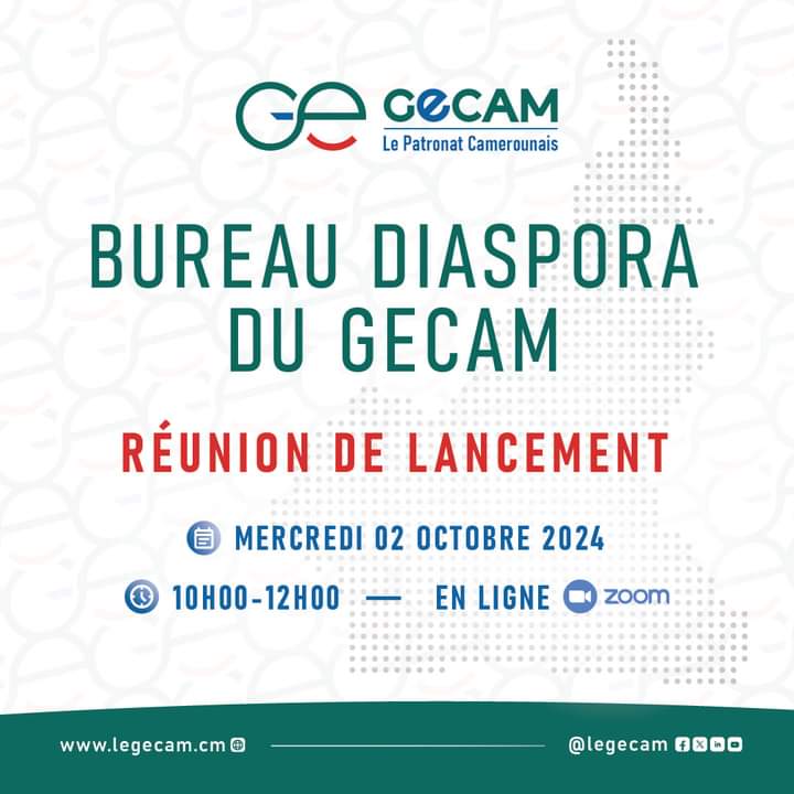 Le Groupement Interpatronal du Cameroun (GECAM) procèdera au lancement officiel de son Bureau Diaspora, sous le thème : « Améliorer la Contribution de la Diaspora Camerounaise au Développement Social et Économique du Cameroun ».