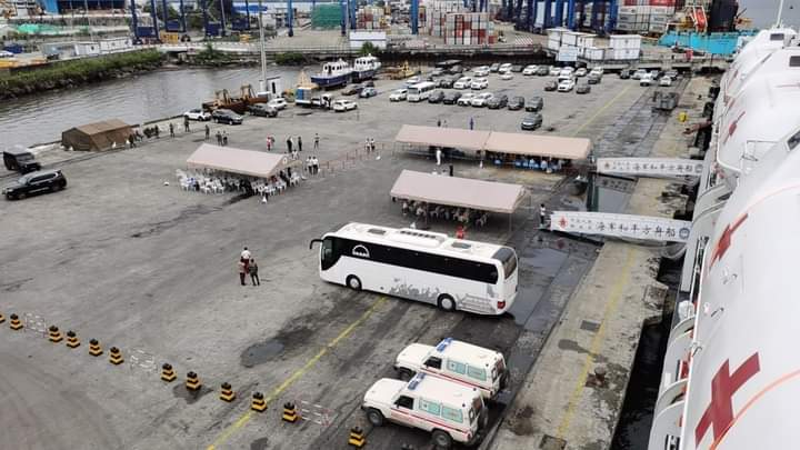 Les patients, soigneusement enregistrés dans plusieurs structures hospitalières de Douala telles que l’hôpital militaire de Région N°2, l’Hôpital Général, l’Hôpital Laquintinie et d’autres, seront ensuite transférés à bord du navire pour recevoir des soins spécialisés.