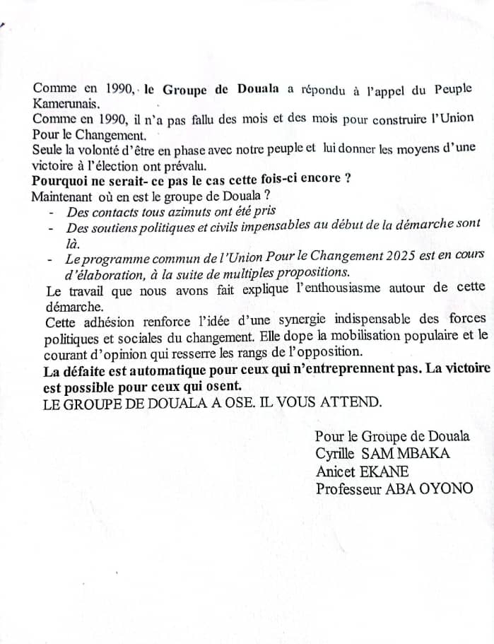 Le Groupe de Douala entend désormais sillonner le pays pour porter cet appel à l’unité, en quête d’adhésions politiques, citoyennes et sociales. Une démarche qui pourrait reconfigurer le paysage politique camerounais à l’orée de 2025, si elle parvient à cristalliser l’espoir autour d’un projet commun.