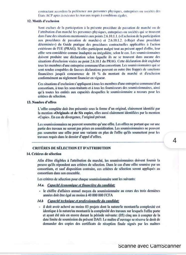 À cet effet, plusieurs entreprises spécialisées sont invitées à soumissionner conformément aux prescriptions du dossier d’appel d’offres et aux règles de passation des marchés applicables à l’action extérieure de l’Union européenne.