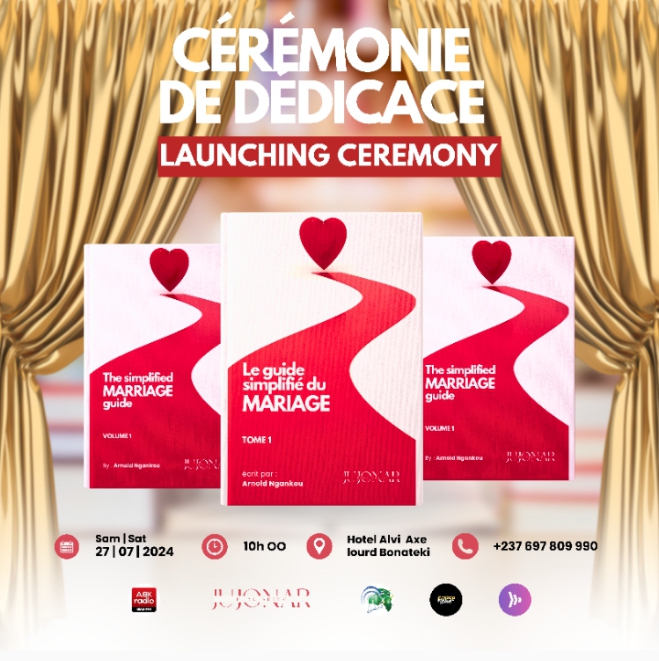 Ce livre, attendu comme une bouffée d’air frais, a été dédicacé ce Samedi 27 Juillet 2024 dans la salle de conférence de l’hôtel Alvi Douala, en présence d’amis, de la famille et de professionnels du mariage et des hommes et femmes de médias.