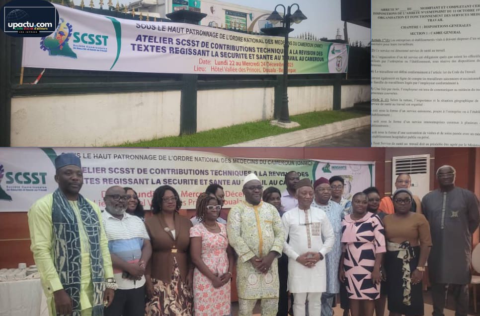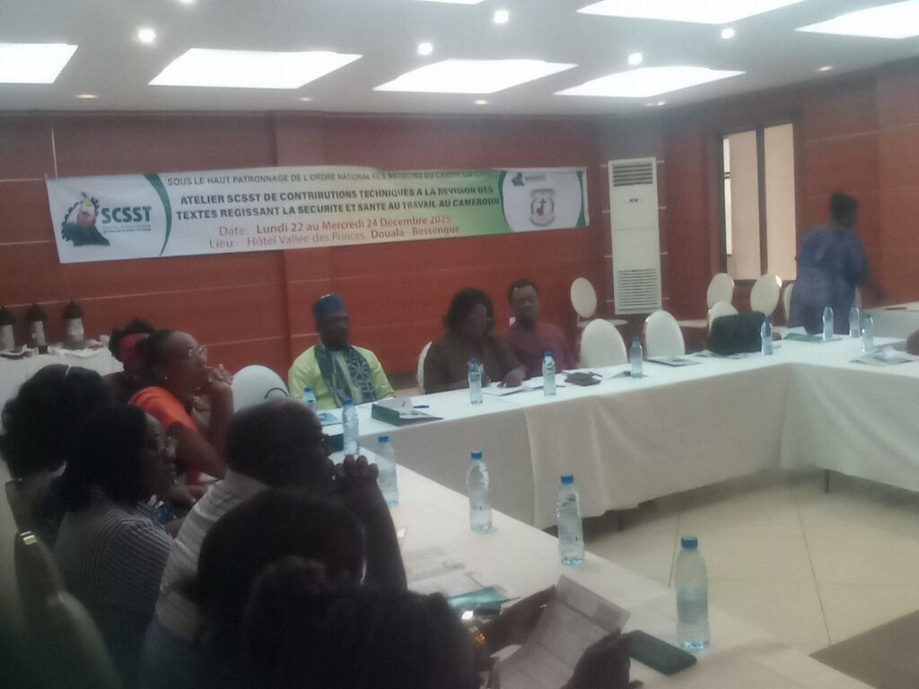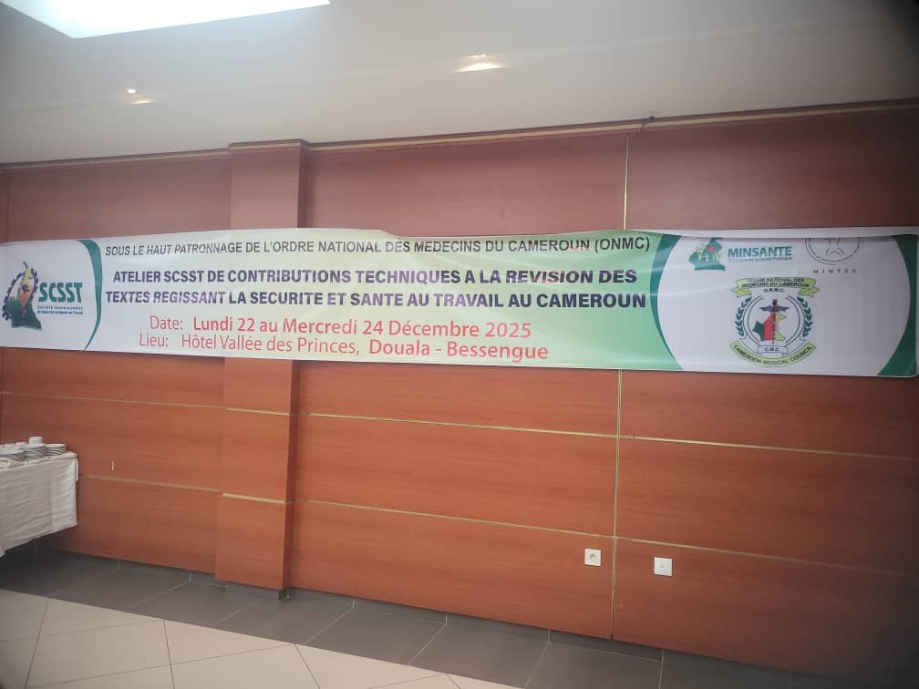 Sous le haut patronage de l’Ordre National des Médecins du Cameroun (ONMC), la Société Camerounaise de la Sécurité et Santé au Travail (SCSST) a réuni, ce lundi 22 décembre à Douala, les professionnels du secteur à l’occasion d’un atelier technique consacré à la contribution à la révision des textes régissant la santé et la sécurité au travail au Cameroun.