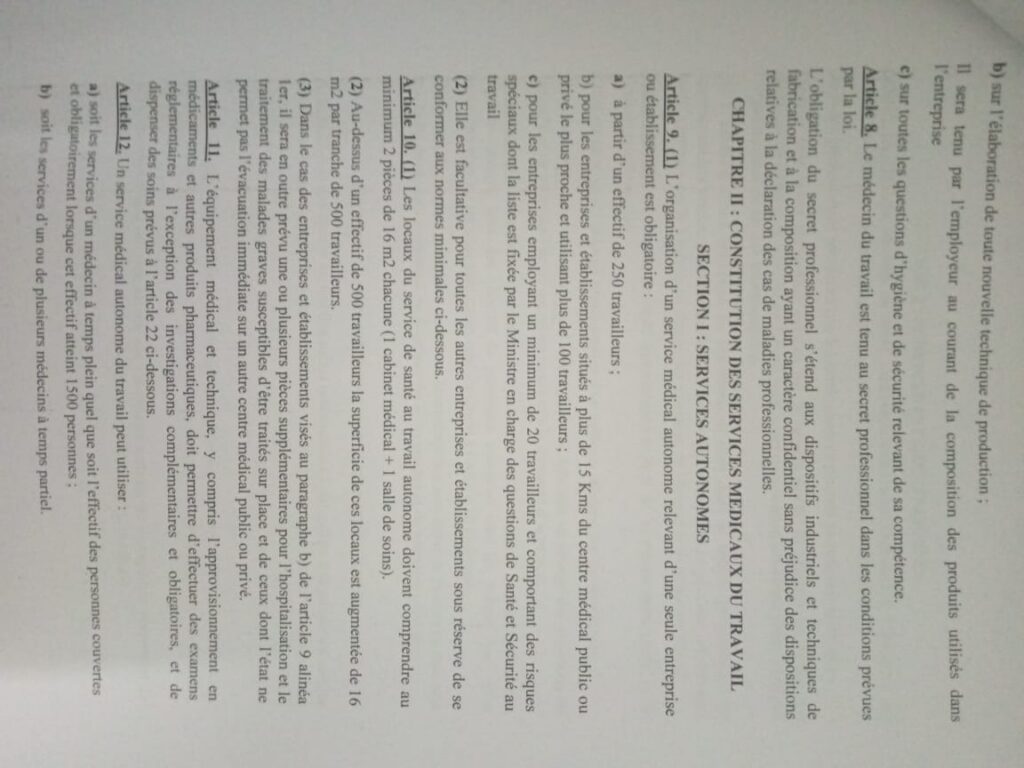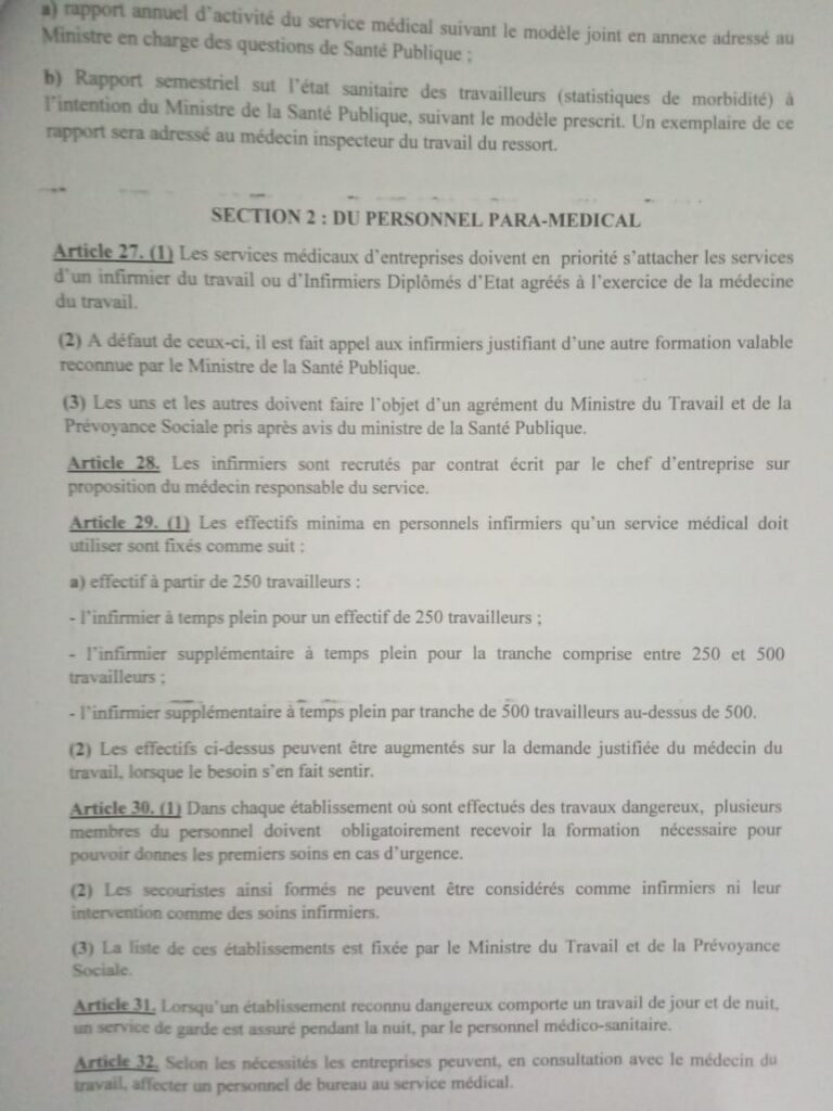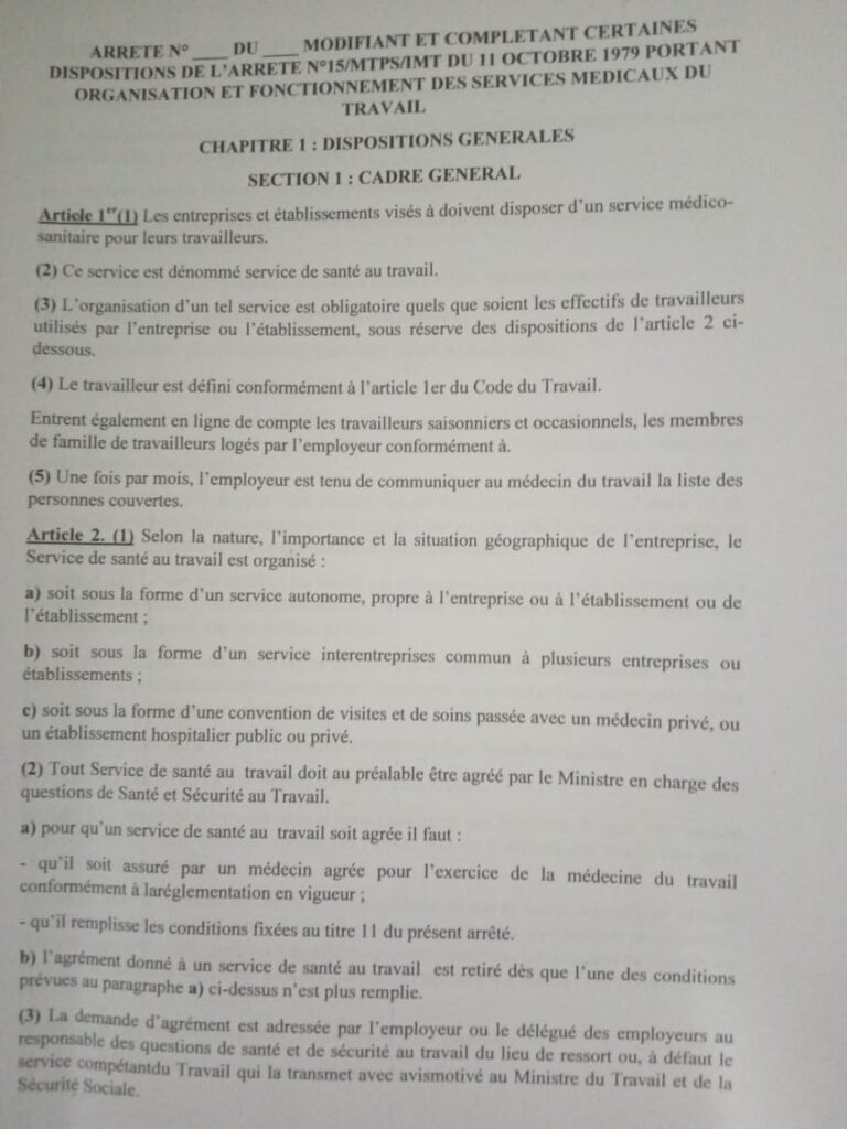 Les échanges ont porté notamment sur l’Arrêté Présidentiel N°15/MTPS du 11 octobre, relatif à l’organisation et au fonctionnement des services médicaux du travail. Structuré en trois chapitres, environ sept sections et 39 articles, ce texte, vieux de près d’un demi-siècle, est unanimement considéré comme vétuste.