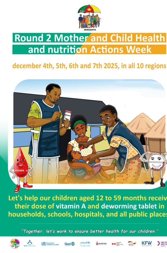 Le Ministère de la Santé publique lance, du 4 au 7 décembre 2025, la 2ᵉ Édition de la Semaine d’Actions de Santé et de Nutrition de la Mère et de l’Enfant. À travers les dix régions du pays, les équipes de santé seront déployées dans les ménages, écoles, hôpitaux et lieux publics pour assurer une meilleure protection des enfants âgés de 12 à 59 mois.