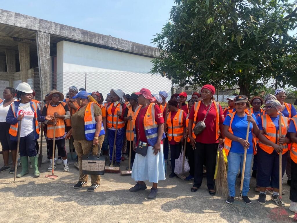 Moment fort de cette descente, la mobilisation des « amazones de la salubrité », encadrées par Mme Marie Dine Adzogo, 4e adjoint au Maire de la Ville de Douala et responsable du programme Douala Clean City, aux côtés des services concentrés et déconcentrés d’hygiène et de salubrité de la CUD.